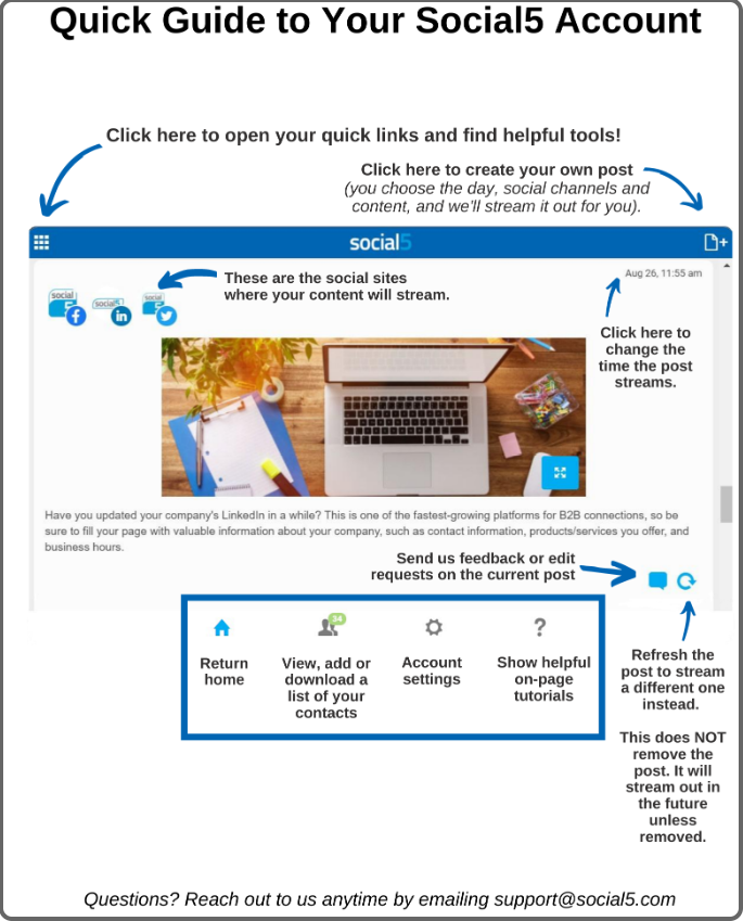 How to access the Social5 app: http://support.social5.com/a/solutions/articles/9000159356